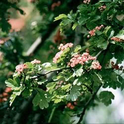 Im Mai, früher als bei Crataegus monogyna; stehen zu 8-12 in Doldenrispen, weiß oder leicht rosa, riechen unangenehm.Sie haben rote Staubgefäße und 2 oder 3 Griffel |