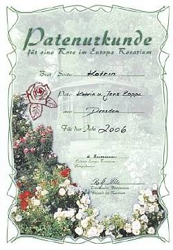 Mit der Übernahme einer Rosenpatenschaft im Europa-Rosarium Sangerhausen können Sie ihren ganz persönlichen Beitrag zum Erhalt dieser von Ihnen ausgewählten Sorte leisten.