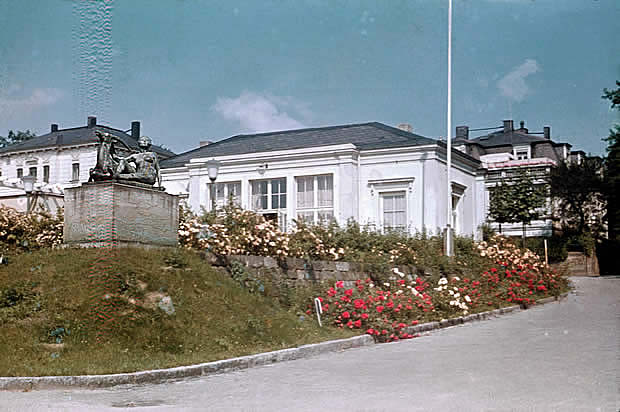 Hier sehen Sie den Originalstandort der Sandsteinfigur "Große Knieende" von Otto Rost. In einem Treppenbogen vor der Pergola, rechts neben der Birke, stand diese Plastik bis zur Umgestaltung des Dresdner Rosengartens anlässlich der Arbeiterfestspiele zu Beginn der 1970er Jahre.