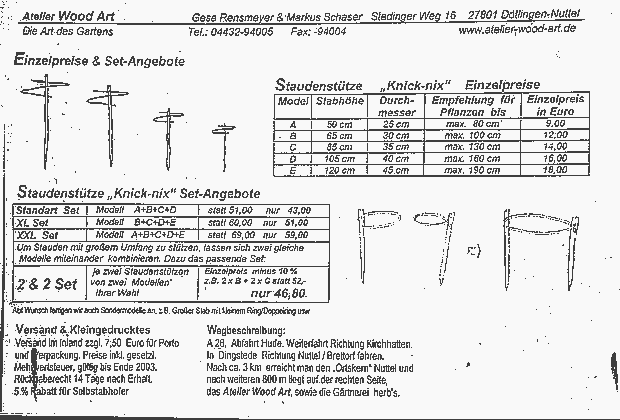 Die hier vorgestellten Staudenstützen können variabel, je nach Pflanzenhöhe, beim Hersteller: "Atelier Wood Art" bestellt werden. Damit ist gewährleistet, das die empfindlichen und am ehesten abknickenden Blütenstängel ebenfalls mit gehalten werden.